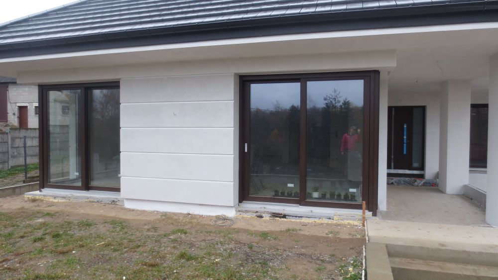 Gruntujemy -mając na uwadze przyszłe kolory struktury na elewacji , uzywamy pigmentów do gruntów